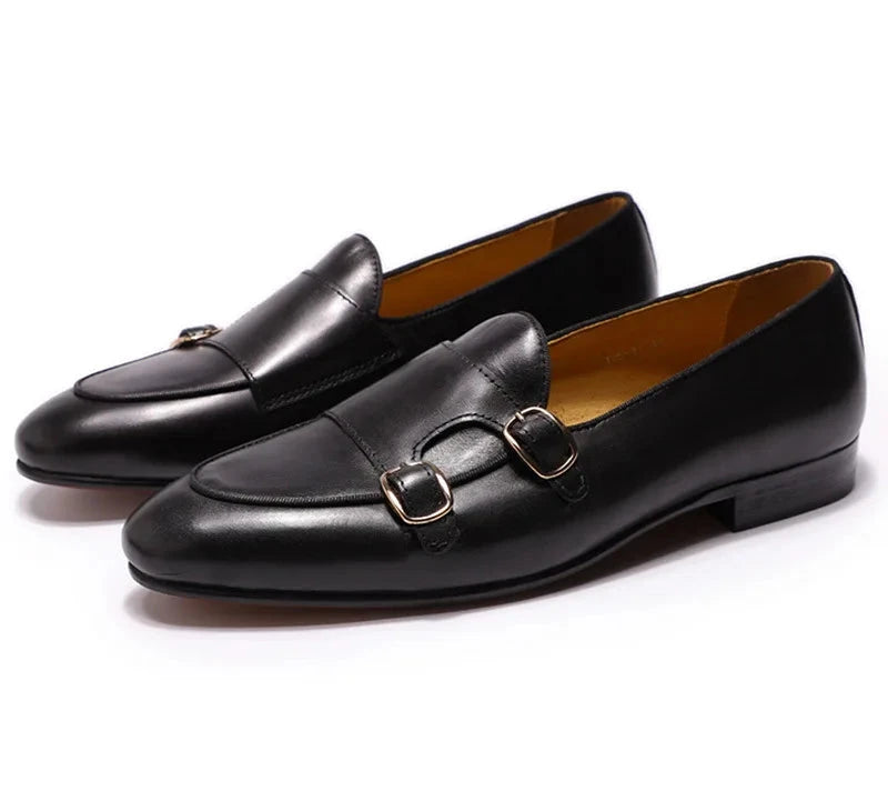 A seamless blend of sophistication and versatility, the Cintura Elegante by Florenzi captures the essence of Italian elegance in every step. Handcrafted from rich, hand-polished brown leather, these double monk loafers exude understated luxury. Their sleek silhouette and golden buckles create a perfect harmony between modern flair and timeless craftsmanship.