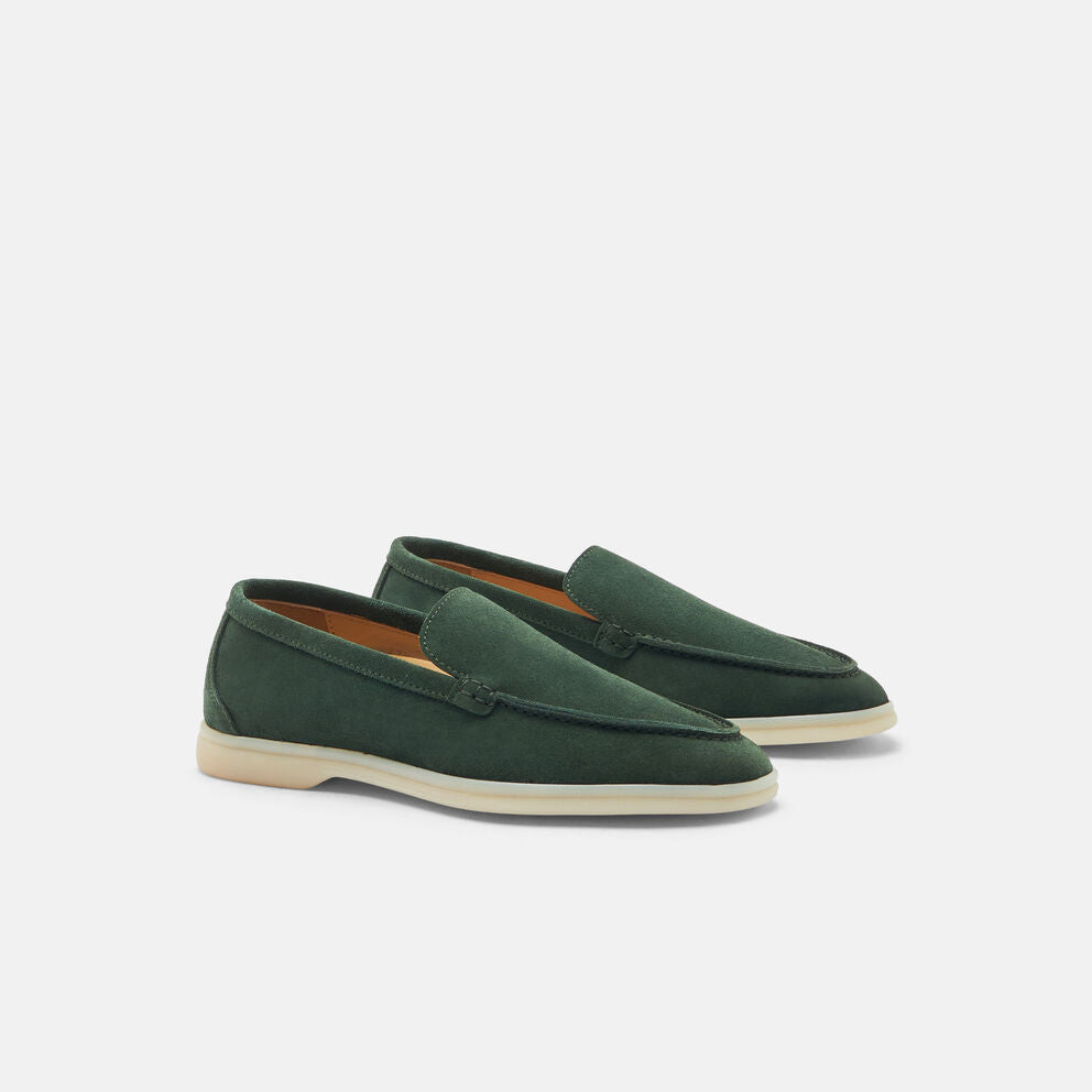 Step into understated elegance with the Florenzi “Torino Verde” loafers — crafted from premium olive-green suede and finished with a lightweight ivory sole for modern contrast. Designed for the modern gentleman, these loafers blend casual sophistication with everyday wearability.